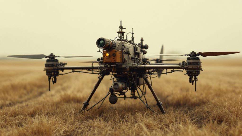 Battery-powered versions of these drones are under development, aiming for greater autonomy. With integrated features like cameras and GPS, you'll find these UAVs playing crucial roles in various fields, from search-and-rescue missions to covert operations. Their silent flight makes them ideal for discreet surveillance and reconnaissance tasks, providing a tactical advantage in complex scenarios.