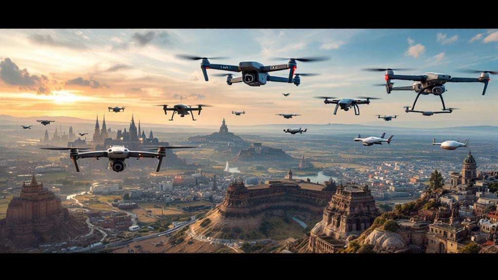 You'll be surprised to know that the concept of drones dates back to 1783 when the Montgolfier brothers launched an unmanned hot air balloon. Fast forward to the early 1900s, Nikola Tesla's remote-controlled boat and Leonardo Torres Quevedo's Telekino system further advanced the idea of unmanned, controlled vehicles. The Kettering Bug, developed in 1917, stands as one of the first military UAVs. Over the decades, drones evolved prominently, seeing major leaps during WWII, the Cold War, and into the modern era with innovations like the MQ-1 Predator. There's quite a journey behind today's versatile drones.
